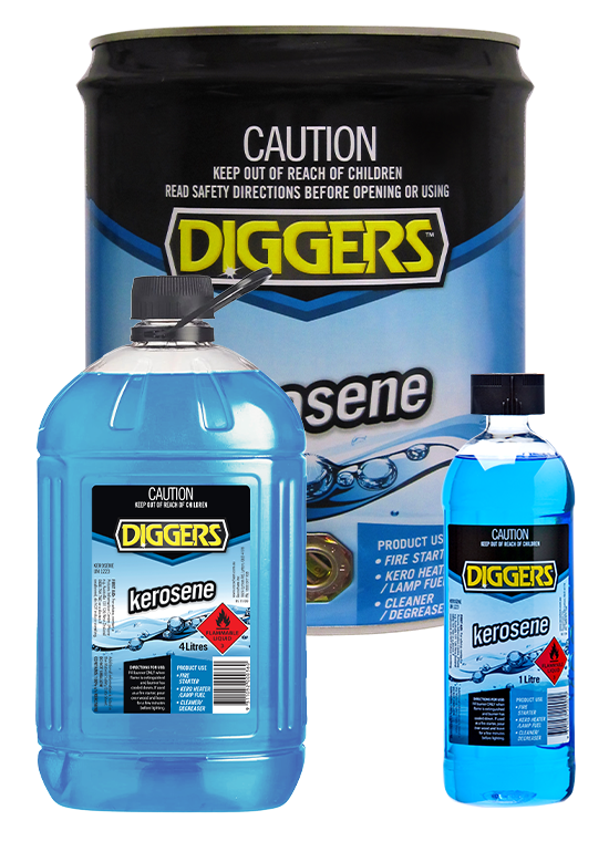 DIGGERS™ Kerosene is a hydrocarbon liquid designed for conventional kerosene heaters, and a variety of household uses – including as a fuel and cleansing agent.